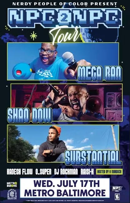 NPC 2 NPC Tour with Mega Ran, Substantial, Shao Dow + More Wednesday, July 17, 2024 7:00 PM 11:00 PM 19:00 23:00 Metro Baltimore 1700 North Charles Street Baltimore, MD, 21201 United States (map) Google Calendar ICS Buy Tickets
