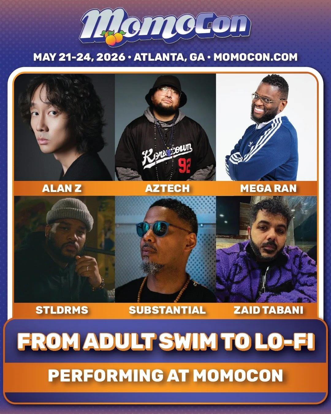 Substantial at Momocon 2026 Thursday, May 21, 2026 2:00 PM 14:00 Sunday, May 24, 2026 3:00 PM 15:00 Georgia World Congress Center 285 Andrew Young International Boulevard Northwest Atlanta, GA, 30313 United States (map) Google Calendar ICS Schedule and Booth Details TBDThursday, May 21stTBDFriday, May 22nd8pm - From Adult Swim to Lo-Fi (#FASTLF) Saturday, May 23rdTBD Sunday, May 24thTBD
